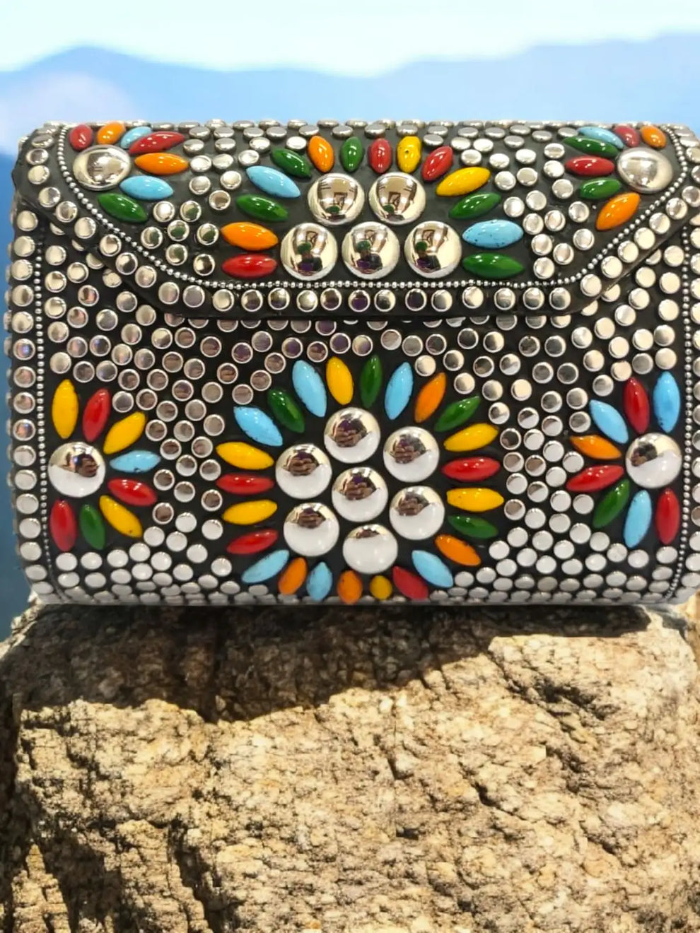 Handcrafted Geometric Studded Clutch - Retro-Mod & Tribal Mosaic Evening Bags