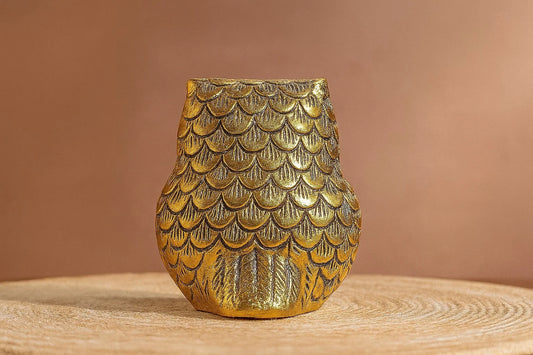Handcrafted Brass Owl Figurine - Golden Metal Owl Statue for Home Decor - Traditional Wisdom Symbol Sculpture