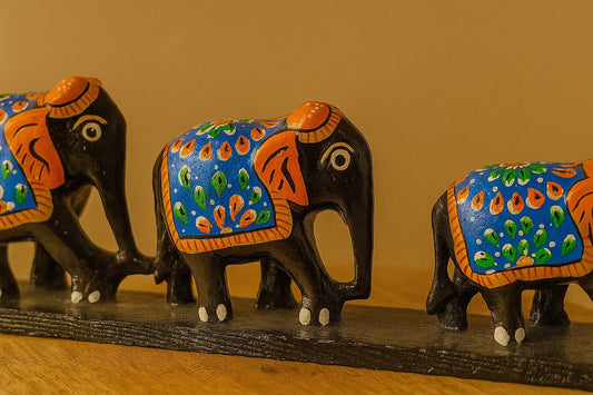 Handcrafted Wooden Elephant Family Figurine – Indian Folk Art Decor Set | Good Luck Home Accent & Gift